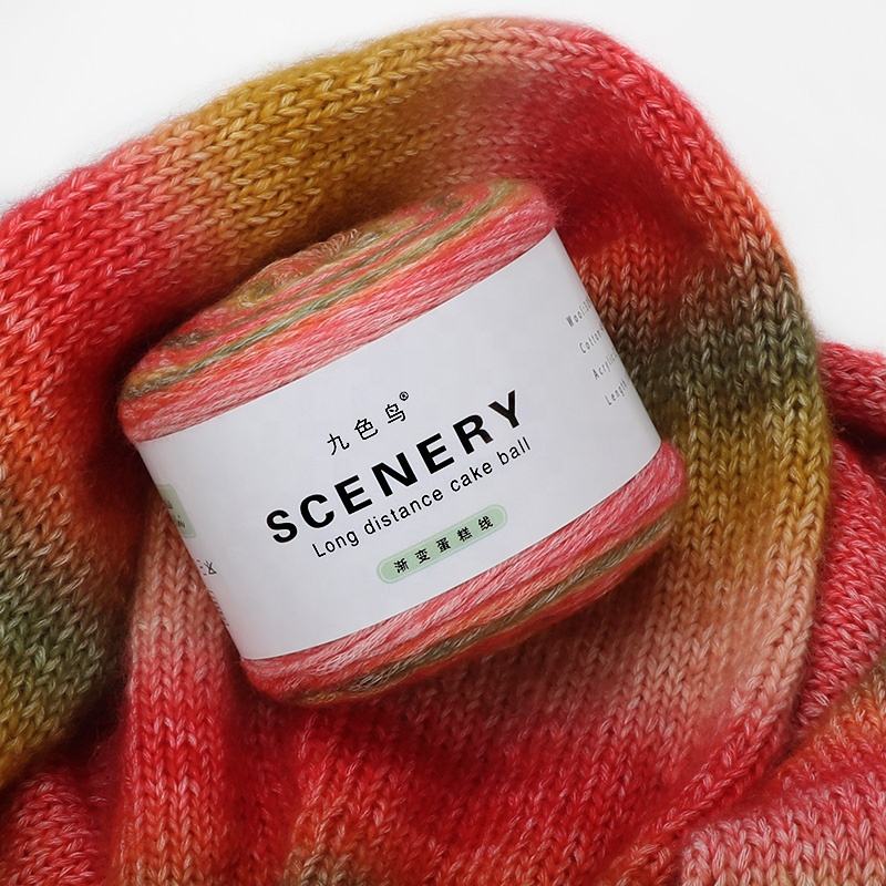 Jiuse-Niao Pelote laine/acrylique dégradée rainbow-cake 100 g JSN-zx-dgx pour tricot, tissage, broderie, anti-boulochage