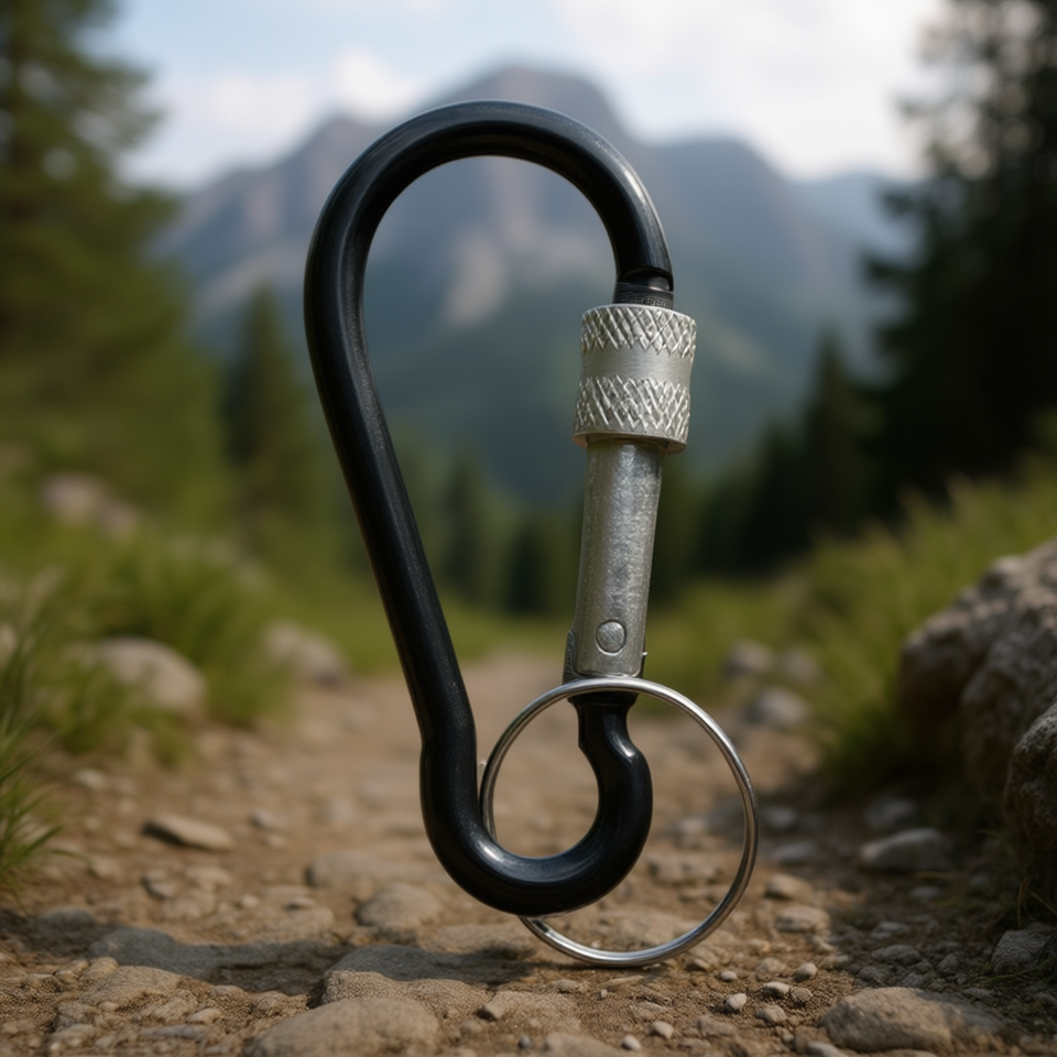 Porte-clés sécurisé en acier inoxydable, ovale, style simple, pour usage extérieur