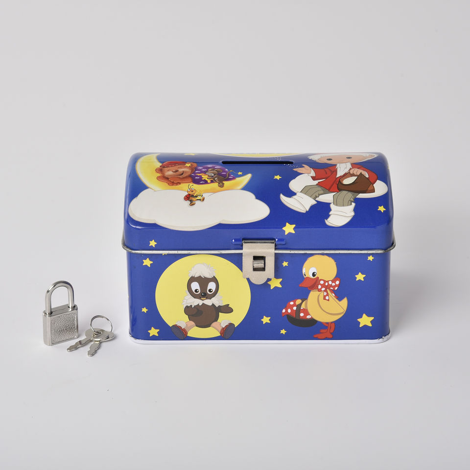 Boîte de rangement sécurisée pour enfants, jouet de dessin animé et boîte en métal pour économiser de l'argent avec serrure et clé 128X83X78