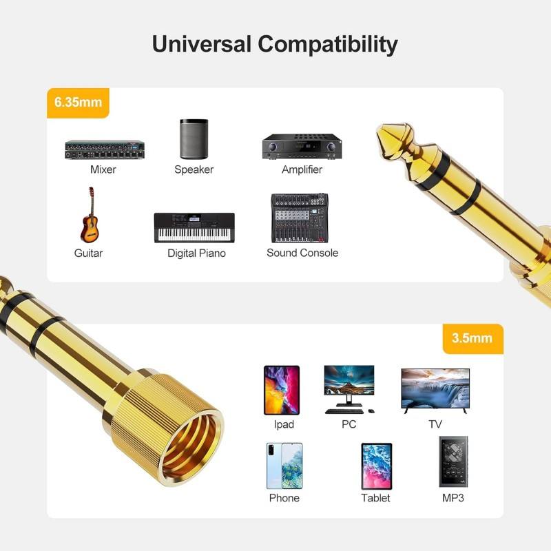 Adaptateur audio à verrouillage par vis sécurisé | Convertisseur mâle 1/4 pouce vers femelle 3,5 mm | Plaqué or pour équipement de studio et de sonorisation en direct