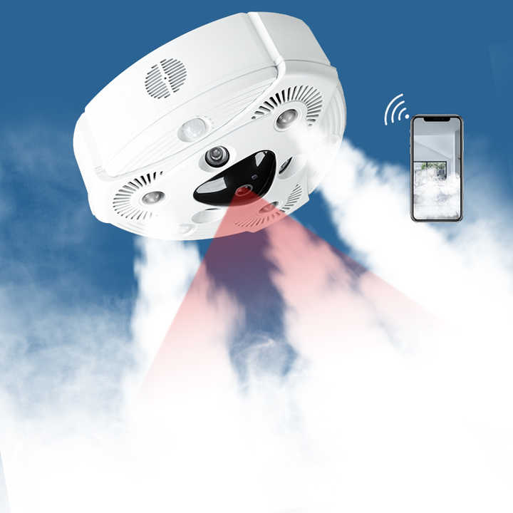 Alarme de sécurité à brouillard avec caméra domestique sans fil, 3 détecteurs de mouvement PIR : identifie le mouvement dans la zone protégée, caméra IP intégrée