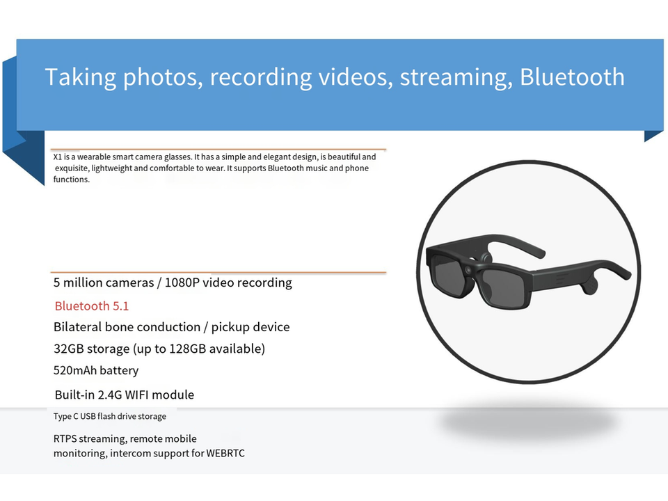 Lunettes intelligentes d'inspection de sécurité avec fonction de streaming RTSP pour la surveillance mobile
