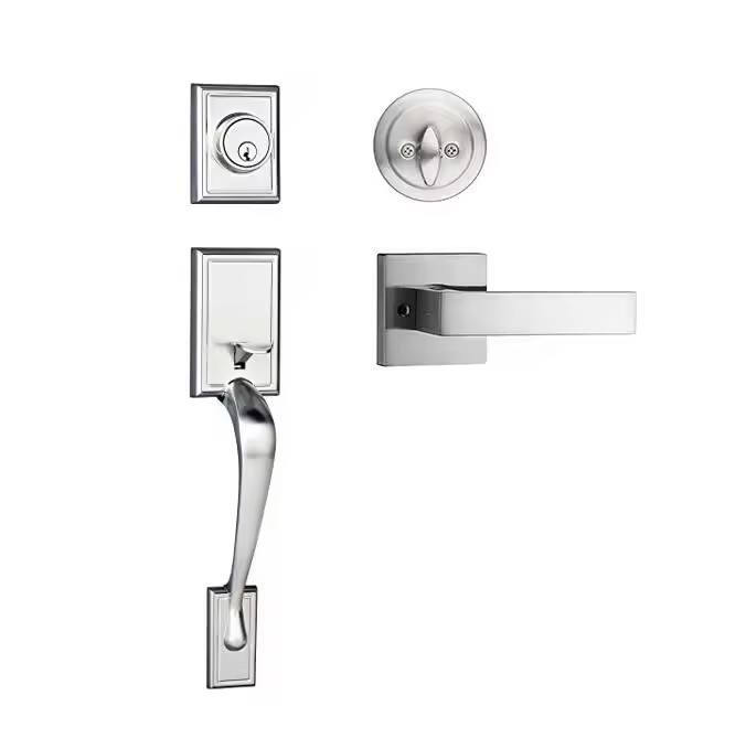 Ensembles de poignées de porte d'entrée sécurisées en alliage de zinc avec plaque carrée pour porte double