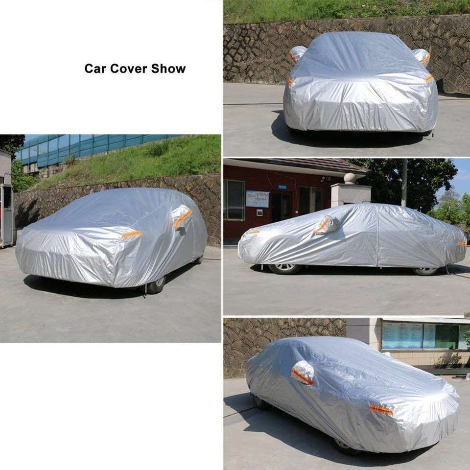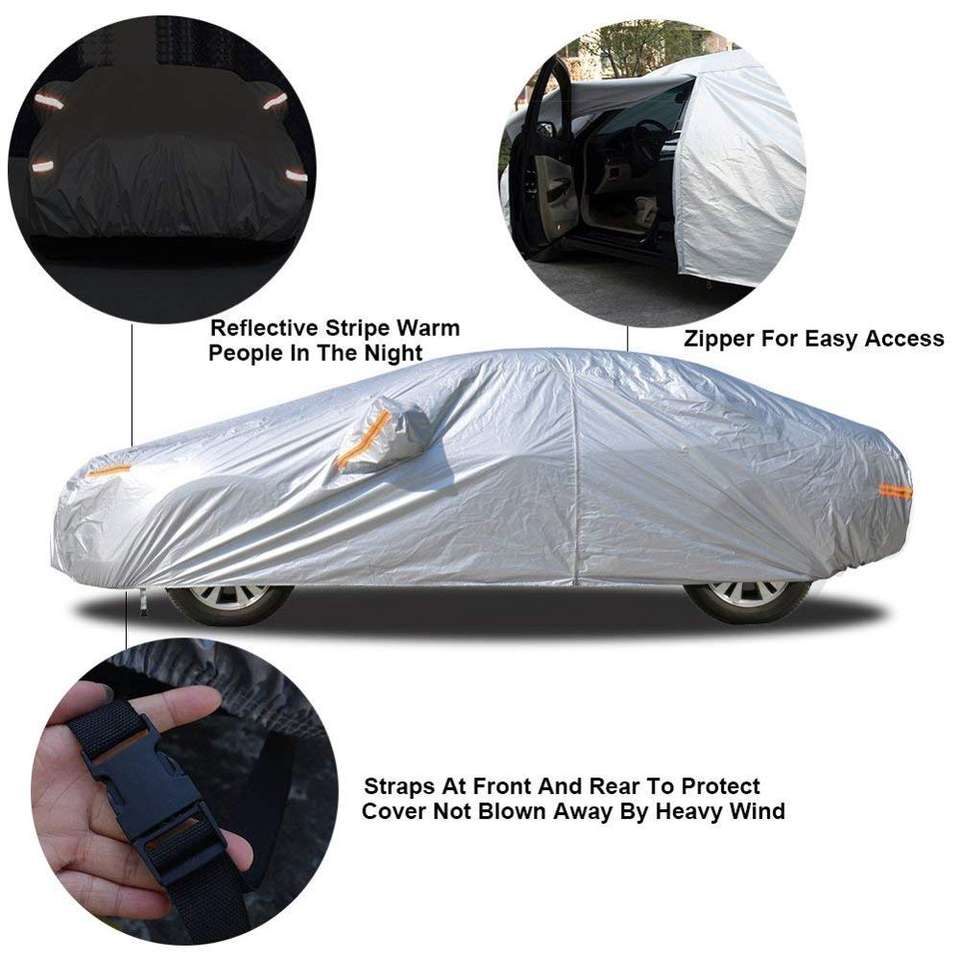 Housse noire, bâche de voiture pour berline avec 6 bandes réfléchissantes, résistant au vent, à la poussière, aux rayures, pour garage