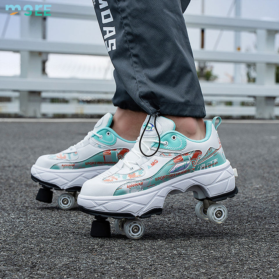 SeeMore Rétractable 4 Roues En Plein Air Kick Out Toupie Patins À Roulettes Chaussures Femmes Déformation Patins À Roulettes Chaussures