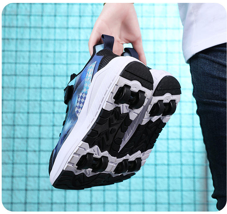 SeeMore Skate Roller Shoes Sport Kids Roller Skating Walking Shoes Children Kick Out Speed Sneakers 4 Wheels Retractable