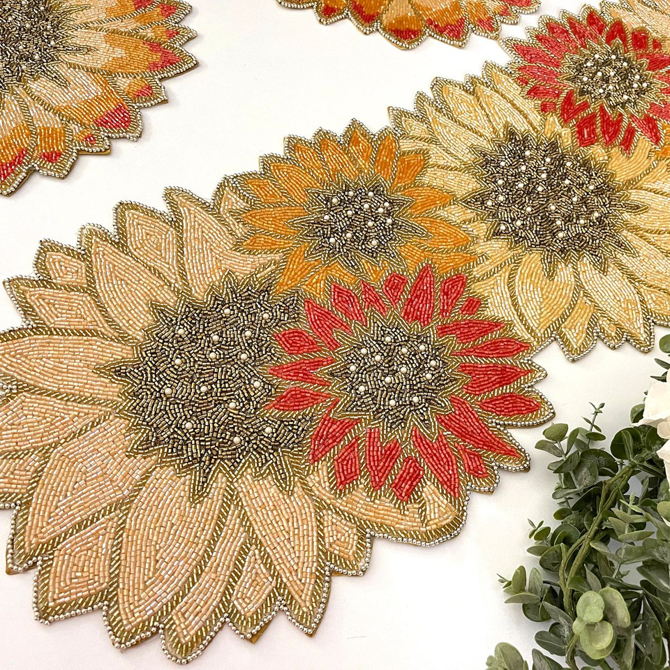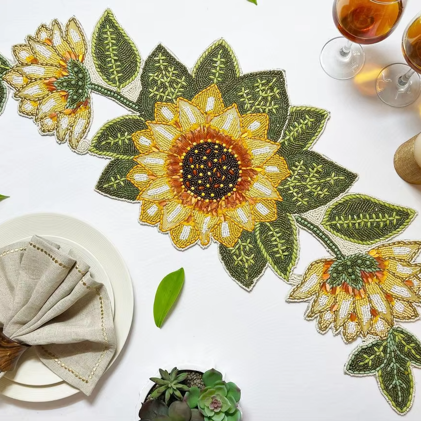Chemin de table brodé de perles pour tables de salle à manger, chemin de table perlé artisanal et artistique avec broderie