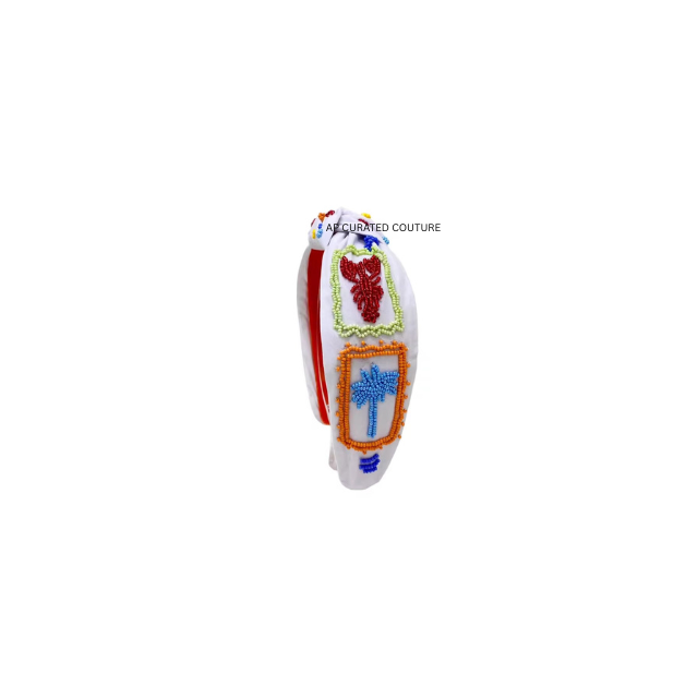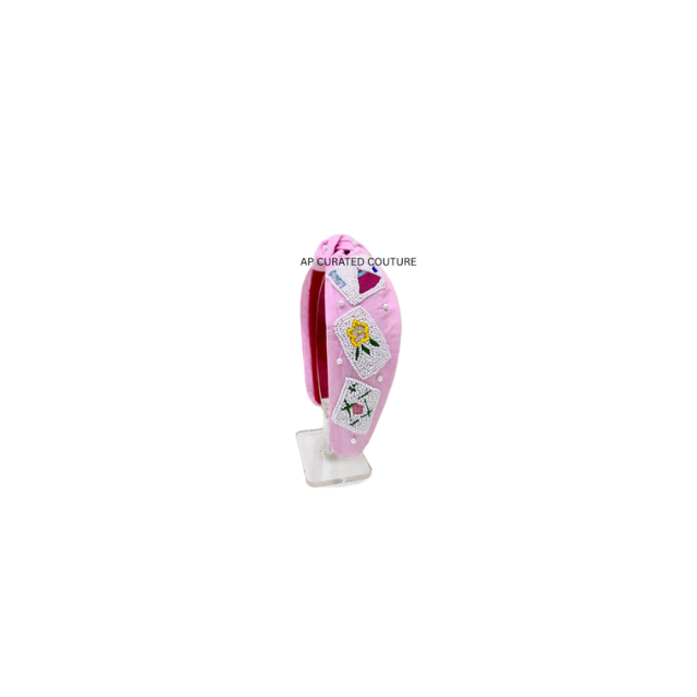 Accessoire pour cheveux noué à la main en coton brodé de perles de rocaille, motifs Mahjong, dernières créations personnalisées