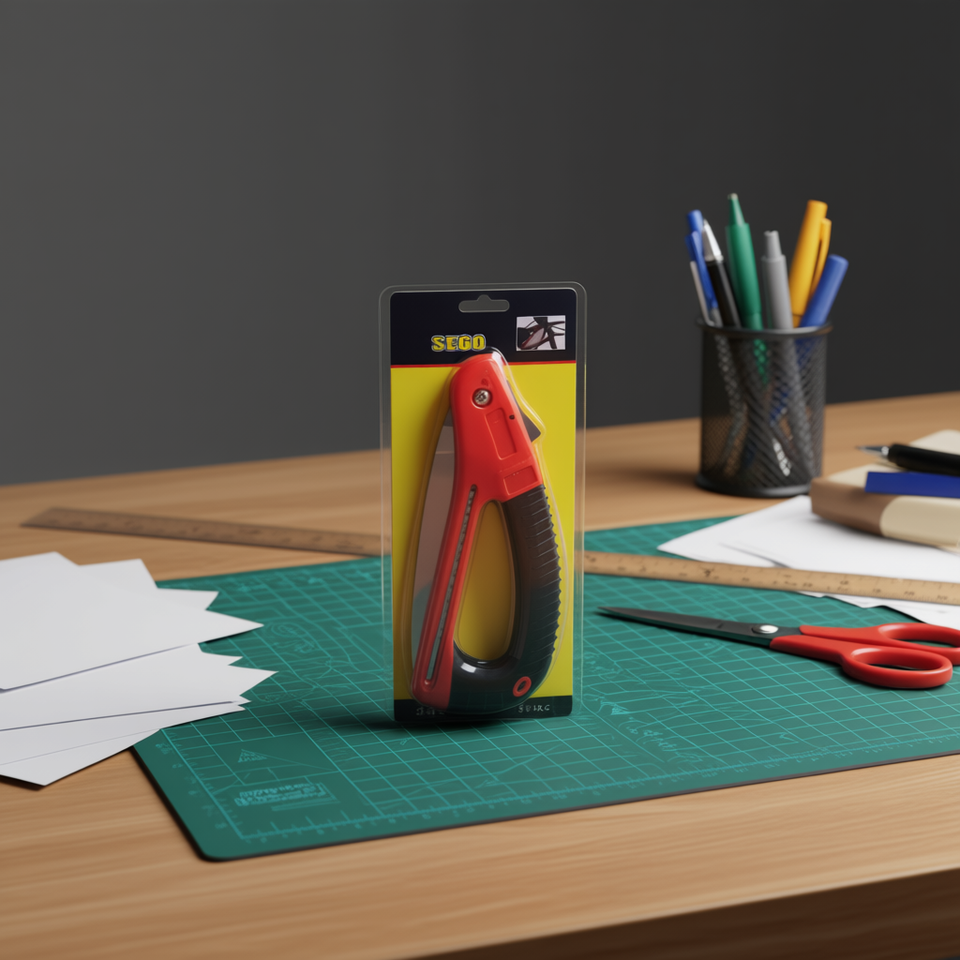 Sega Utility Knife Red Plastic Handle Stainless Steel Blade Retractable Office Cutting Tool
