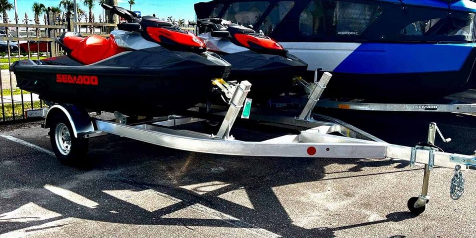 Remorque compacte pour deux jet-skis de 4,2 m, design exclusif sélectionné, avec support de roues inférieur