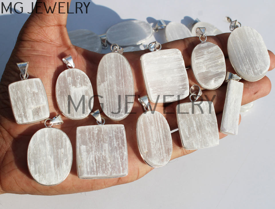 Product Name:Selenite Bezel Silver Plated Pendants