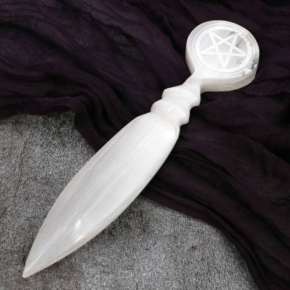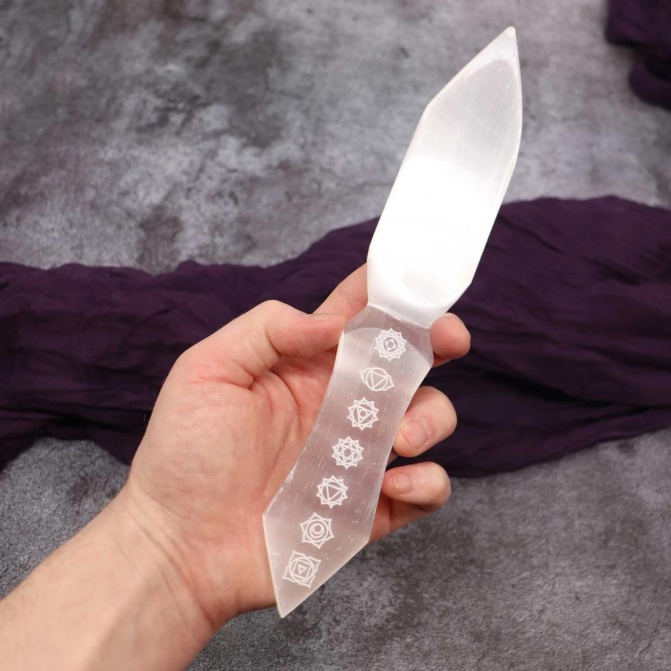 Épée en Sélénite Quartz - Sculpture en Pierre Précieuse Gravée Feng Shui