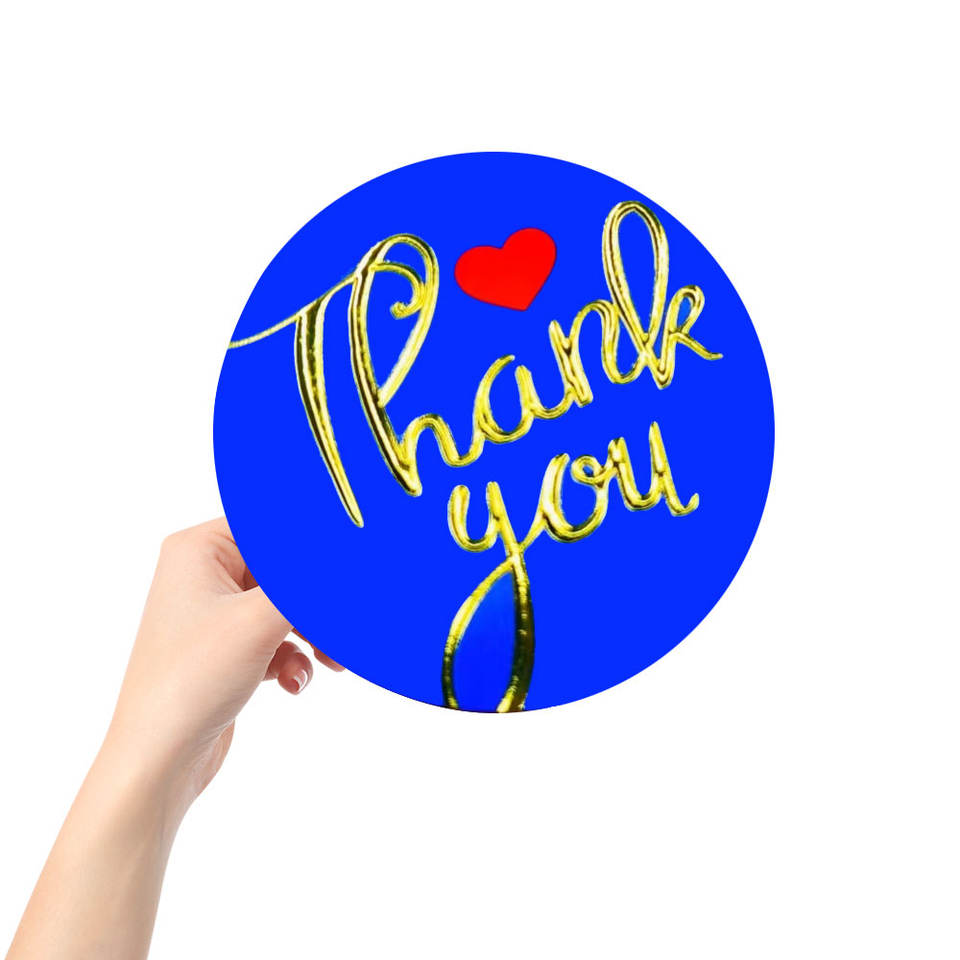 custom round circle blue color gold foil embossed thank you sticker