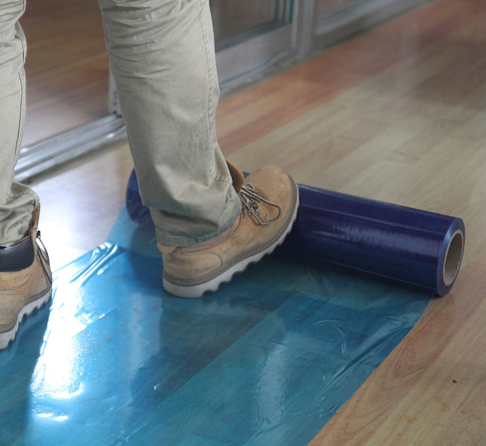 Film de protection auto-adhésif pour sols durs pour déménagement et construction