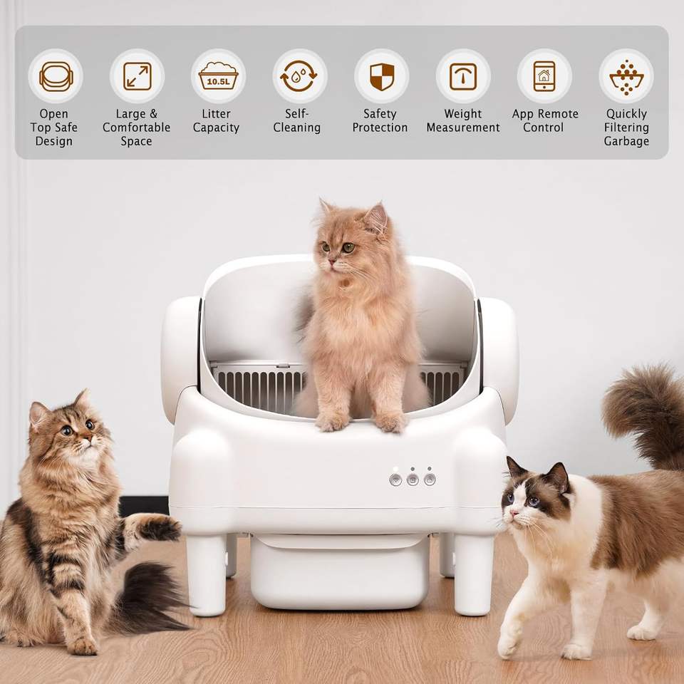 Bac à litière automatique à ouverture supérieure autonettoyant avec contrôle par application, nettoyage facile, grande capacité, pour plusieurs chats, capteurs de sécurité, contrôle des odeurs