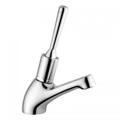 Robinet d'évier à fermeture automatique avec levier anti-dévissement, accessoire de robinetterie de salle de bain chromé