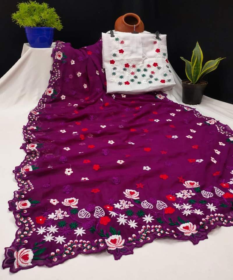 Saree de 5,5 mètres + chemisier de 1,0 mètres