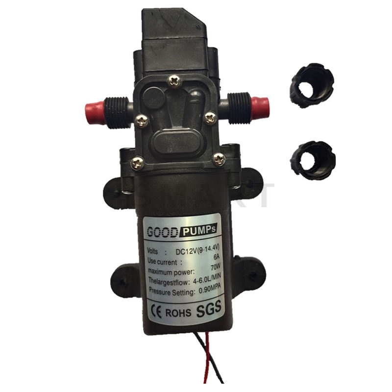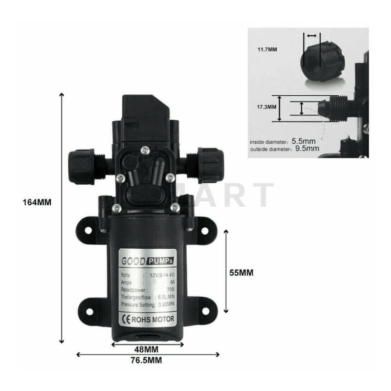 Rateapower Pompe à diaphragme auto-amorçante 12V DC 6 L/min 70W 75–130 PSI (0,90 MPa) Ø10 mm eau/solvant pH5–8 pressostat 1 pc