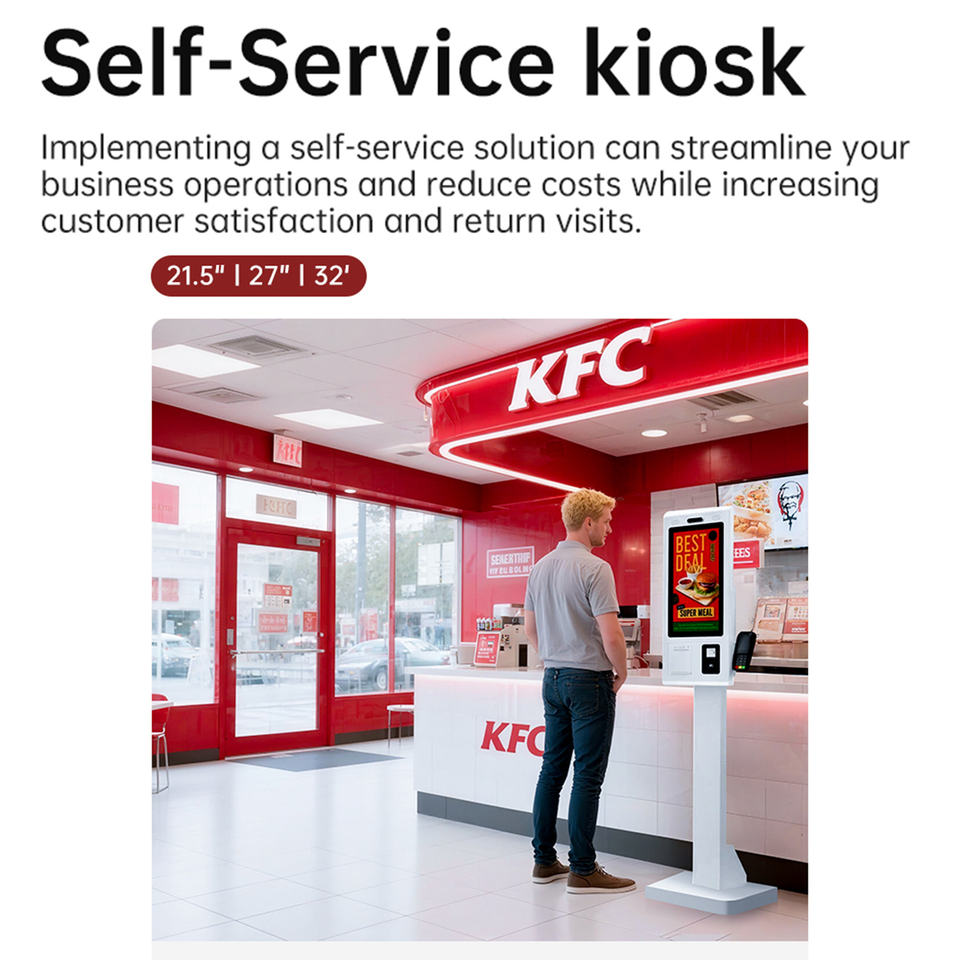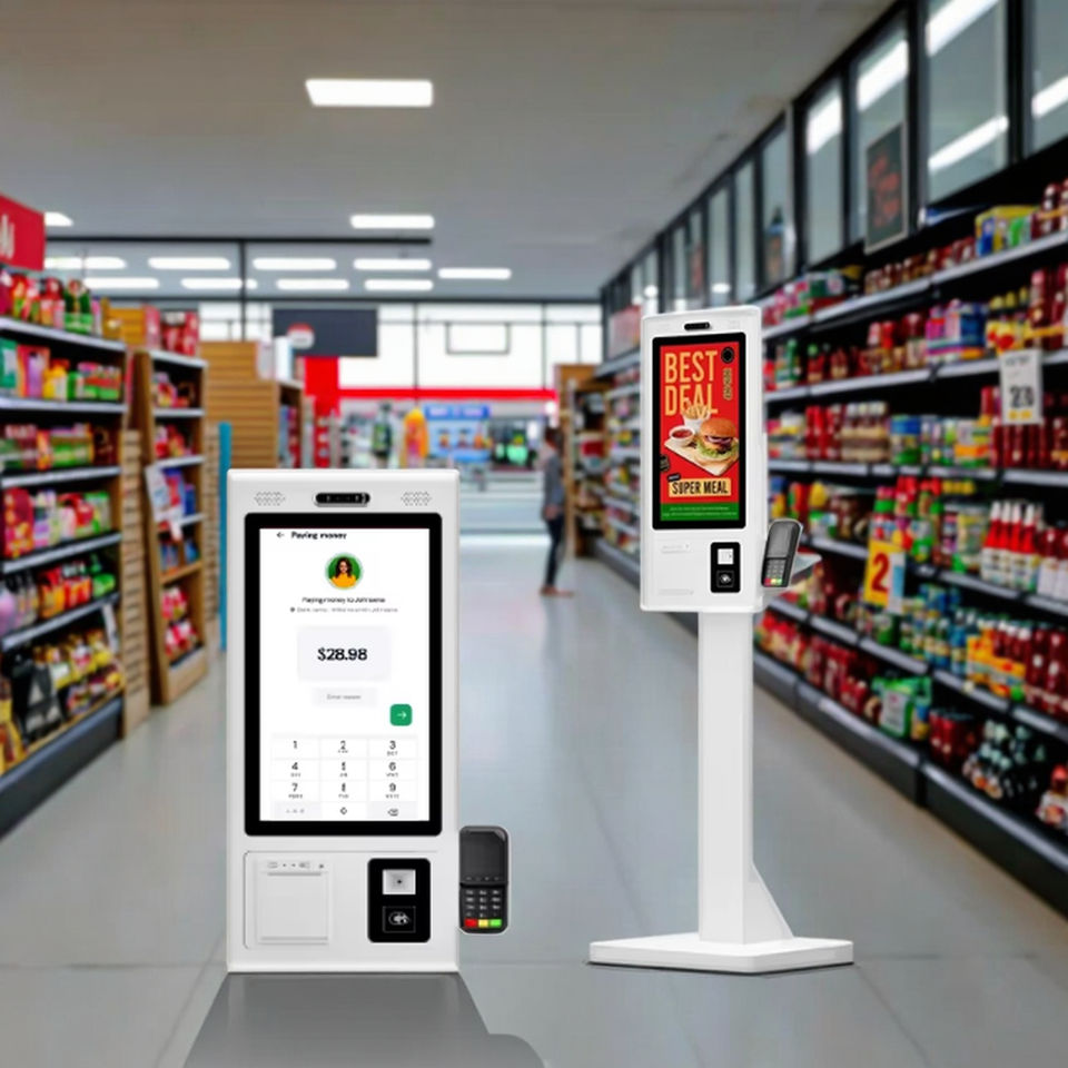 Caisse enregistreuse POS avec paiement par code QR en libre-service pour les supermarchés et les restaurants, station de commande de produits (21,5-32 pouces)