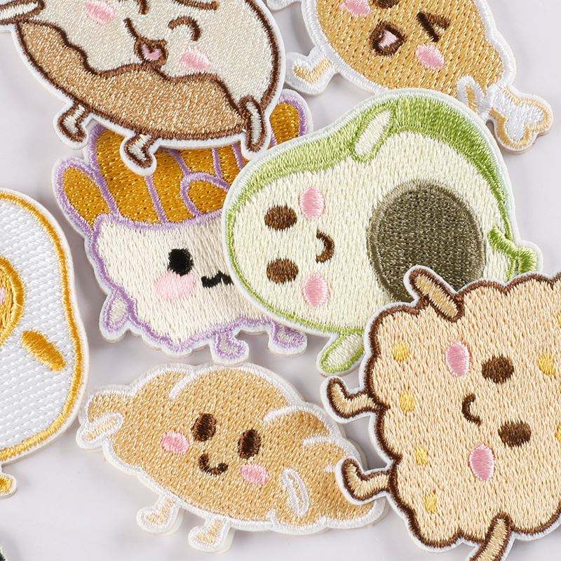 Patch brodé auto-adhésif pour ordinateur, motifs mignons (aliments, pain, œuf, poisson, avocat) pour coque de téléphone, sac, vêtements, décoration