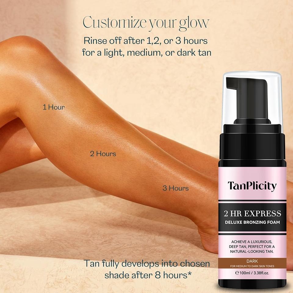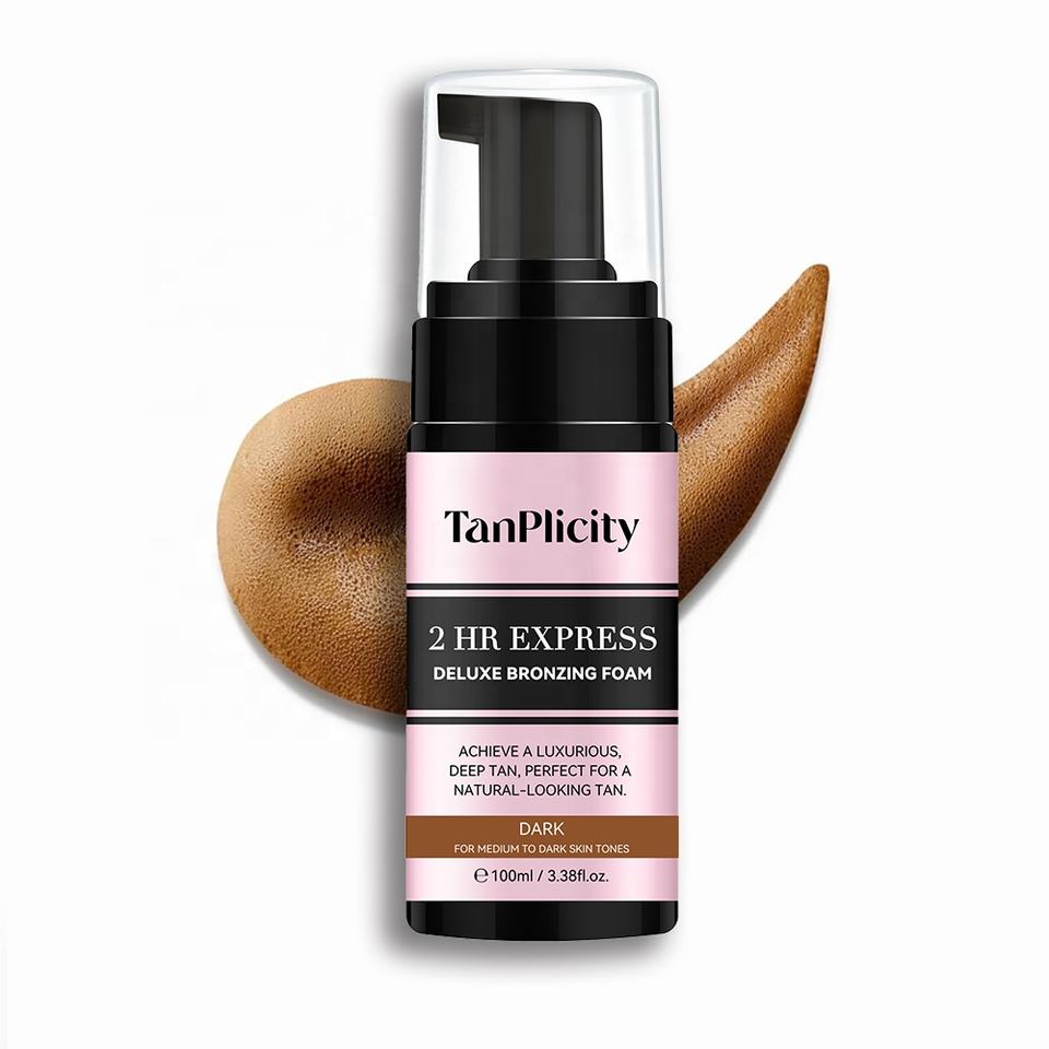 Mousse auto-bronzante à marque privée Express One Hour ultra foncée, 100 ml 150 ml, gants pour mousse auto-bronzante à la fraise