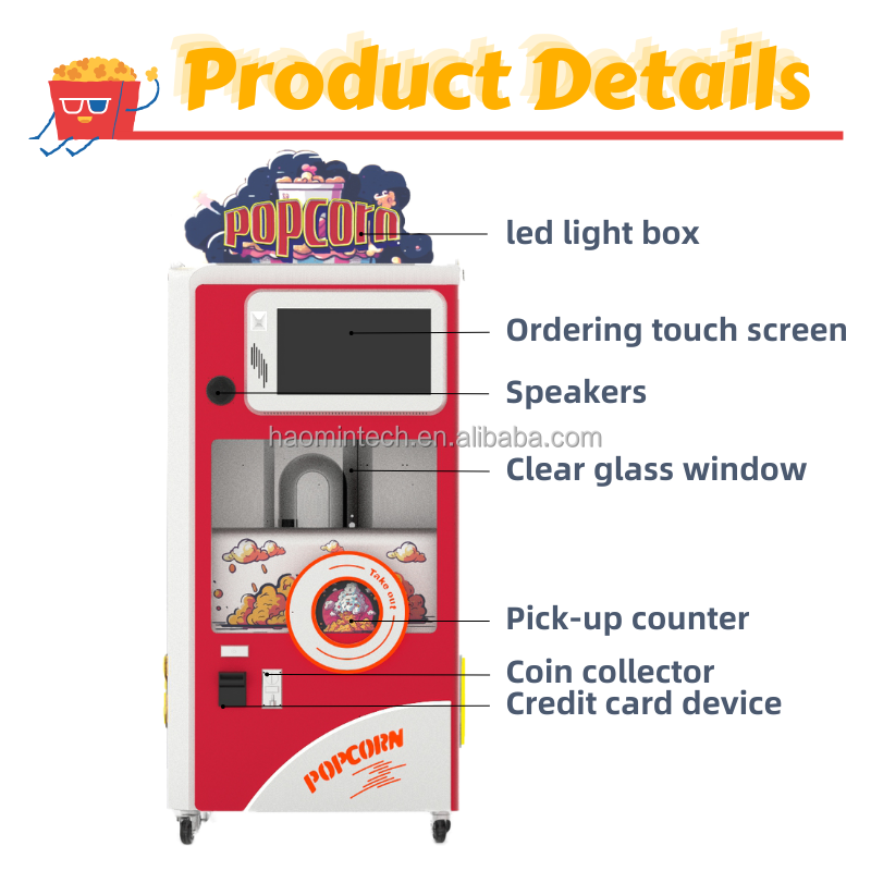 Machine à Popcorn Automatique Commerciale à Air Chaud pour Caramel, Distributeur Automatique de Popcorn