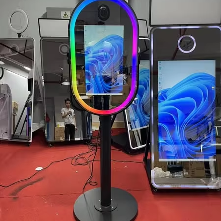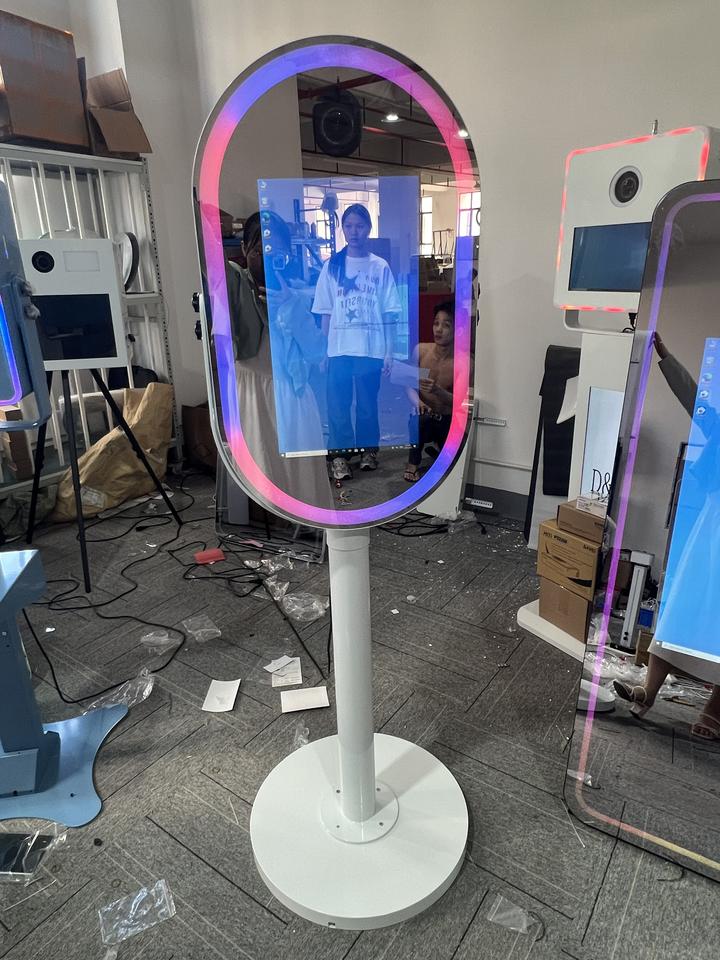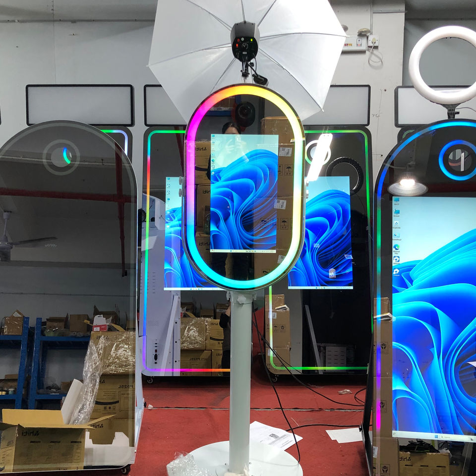 Machine de cabine photo miroir ovale Selfie avec écran tactile LCD de 21.5 pouces Mini PC intégré Photomaton miroir magique ovale