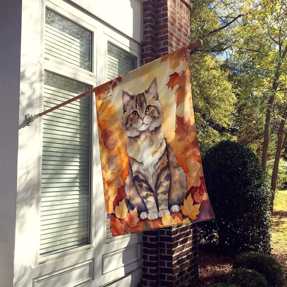 Selkirk Rex chat feuilles d'automne grand porche manches pôle décoratif cour bannière multicolore Polyester maison tenture murale illustration drapeau
