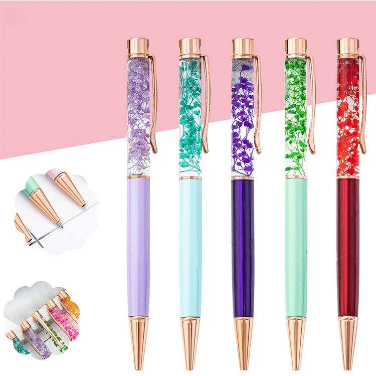 Stylo à bille en métal avec fleur liquide flottante et design DIY