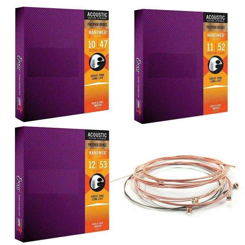 En vente maintenant NOUVEAU Elixir 11002 11027 16052 11052 Cordes de guitare acoustique Nanoweb Light-
