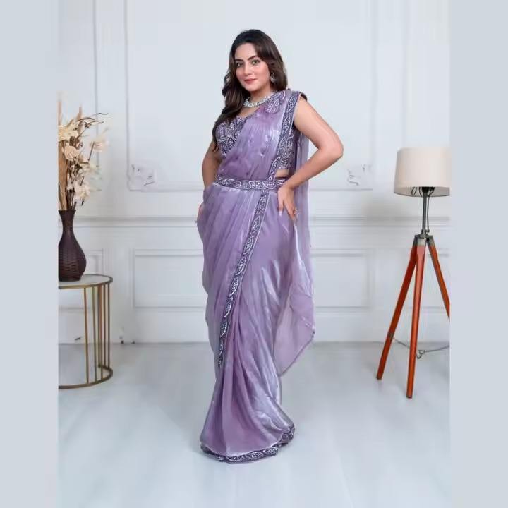 Vente de saris en tissu prêt-à-porter lavande élégant sari d'Inde orné à la main pour toutes les occasions