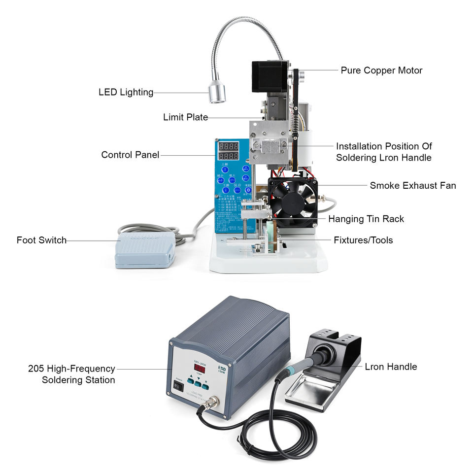 Machine à souder de bureau semi-automatique pour connecteurs de câbles USB, LED et PCB, soudage électronique avec contrôle PLC