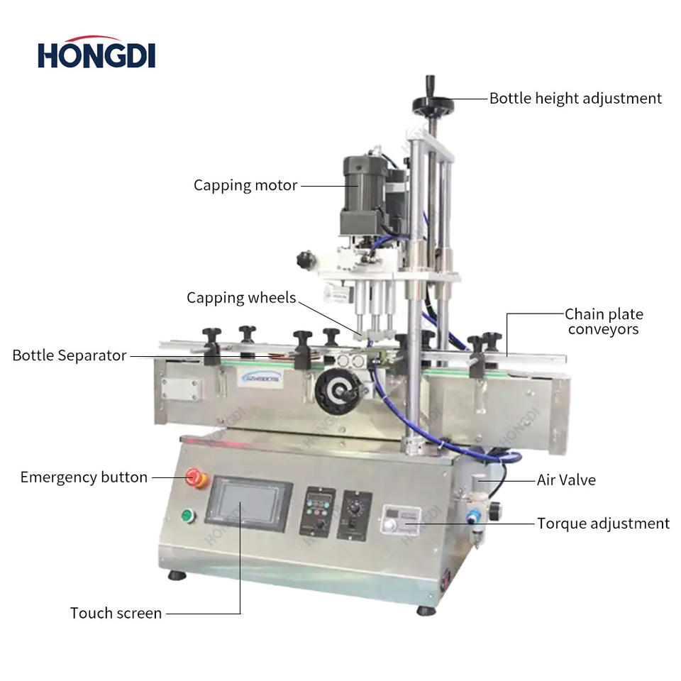 Machine de bouchage semi-automatique électrique motorisée pour bouteilles en plastique 2000BPH Diamètre max. 100mm Garantie 1 an Boissons et produits chimiques