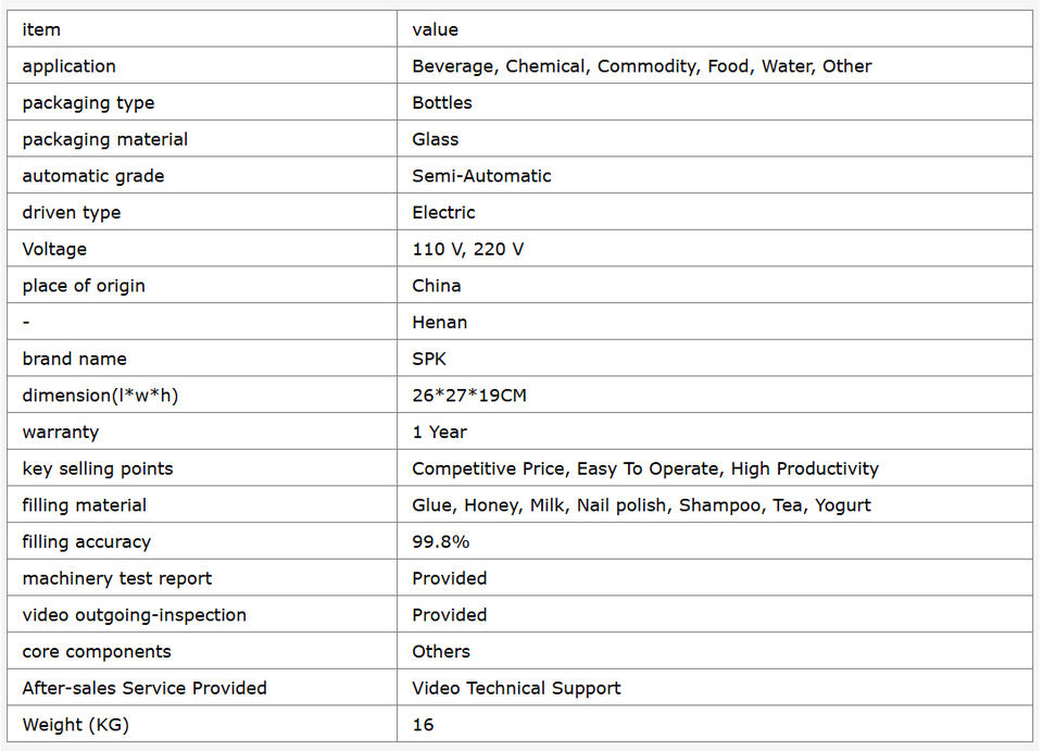 Machine à piston électrique semi-automatique pour liquides visqueux, haute productivité, pour le remplissage de bouteilles en verre (eau, miel, shampoing, thé, yaourt, lait, produits pour les ongles)