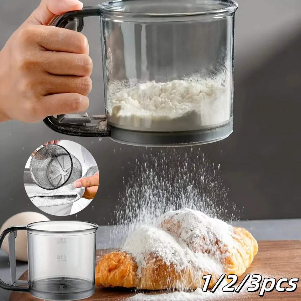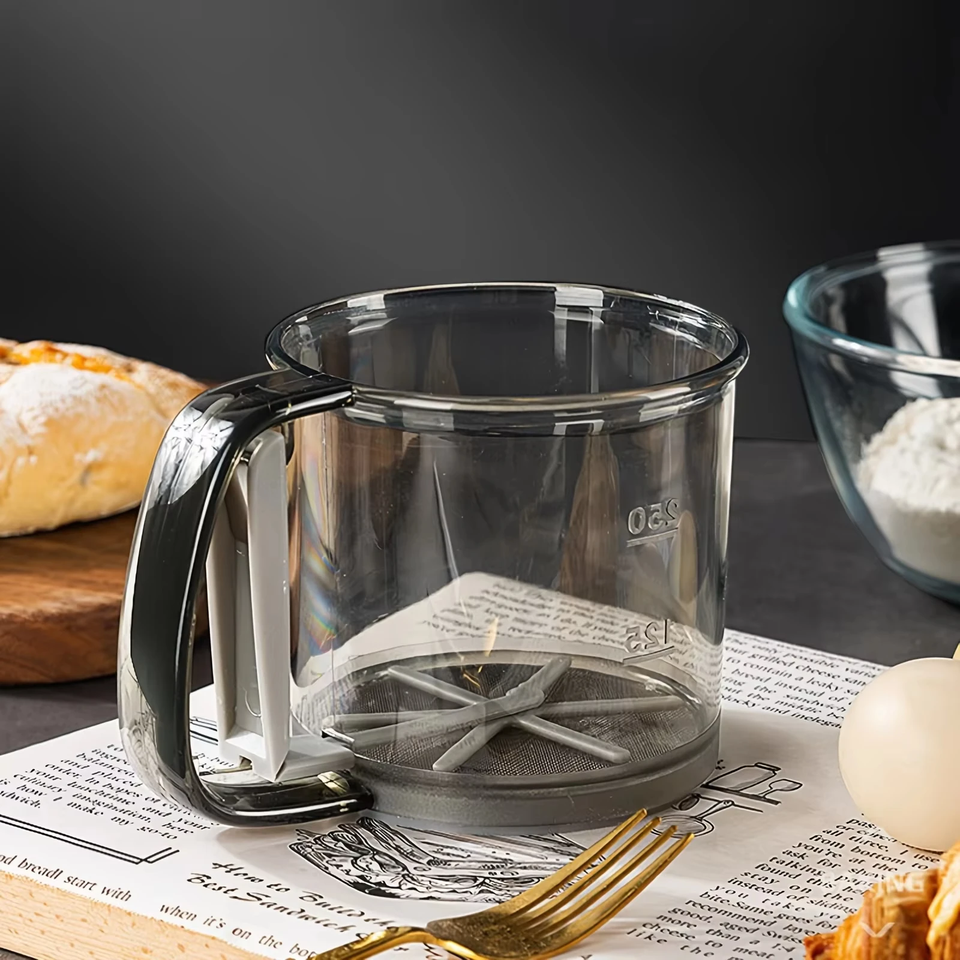 Tamis à farine semi-automatique transparent avec presse manuelle, filtre de cuisine, tamis à farine antiadhésif, outils de pâtisserie