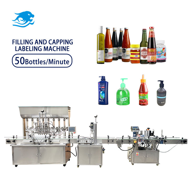 Ligne de production de machines de remplissage, de scellage et d'étiquetage semi-automatiques pour bouteilles en verre/plastique de 10 à 500 ml, multi-matériaux
