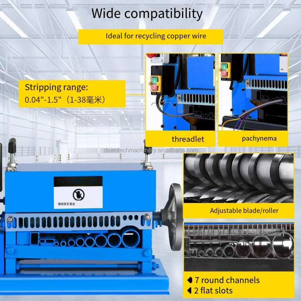 Machine semi-automatique de recyclage de câbles en cuivre usagés à haute séparation, pour le dénudage, la coupe et le tirage des fils