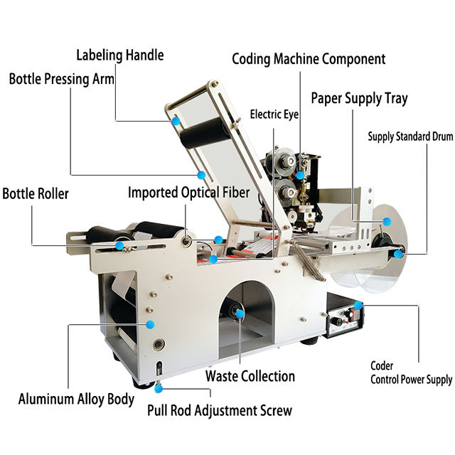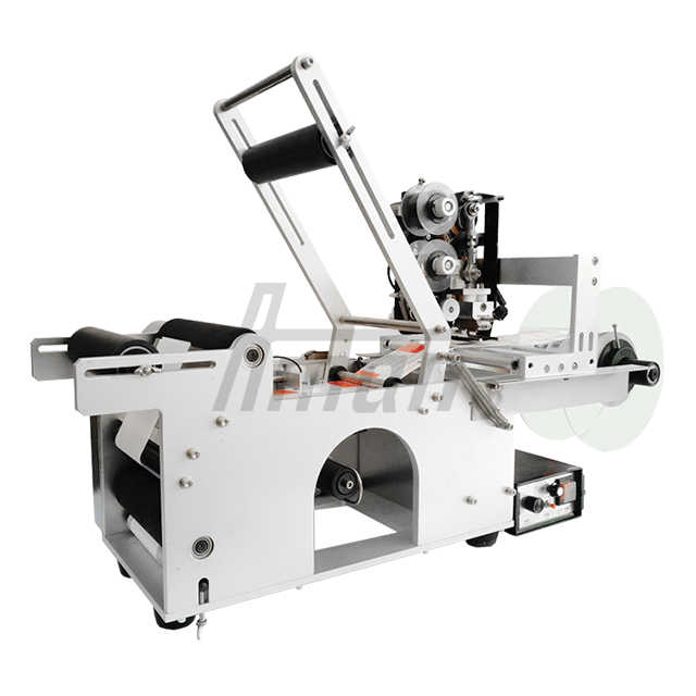 Machine d'étiquetage semi-automatique pour bouteilles et canettes rondes, contrôlée par PLC, vitesse d'étiquetage 25-50 pièces/min, emballage alimentaire et boisson