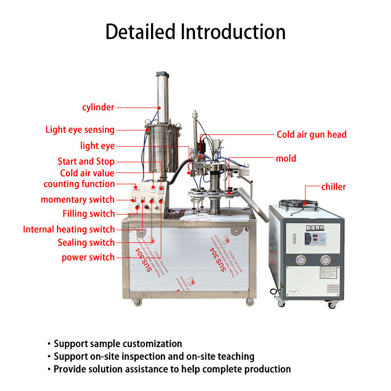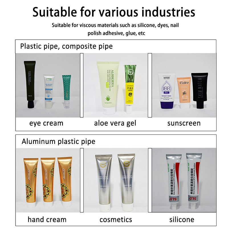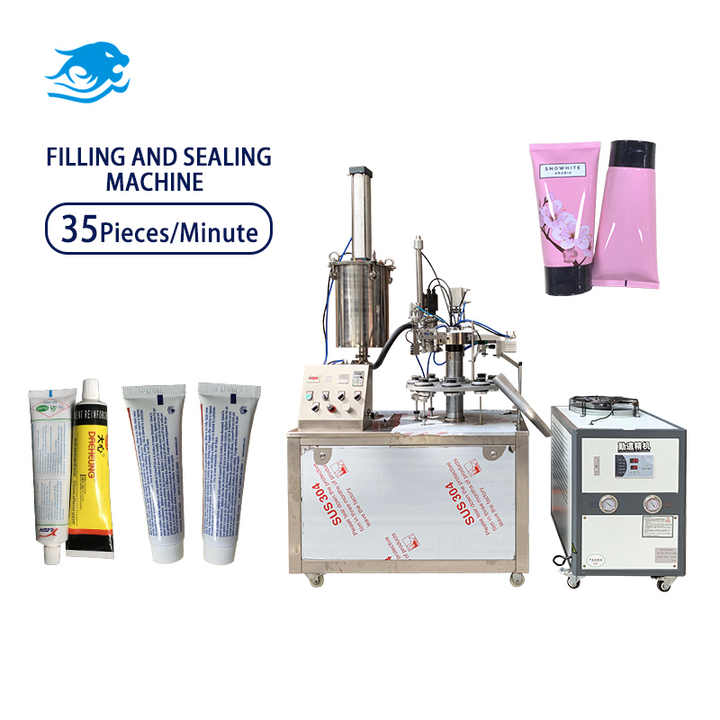Machine de remplissage et de scellage semi-automatique pour tubes avec système de chauffage par pistolet à air froid pour les applications alimentaires, de boissons et chimiques