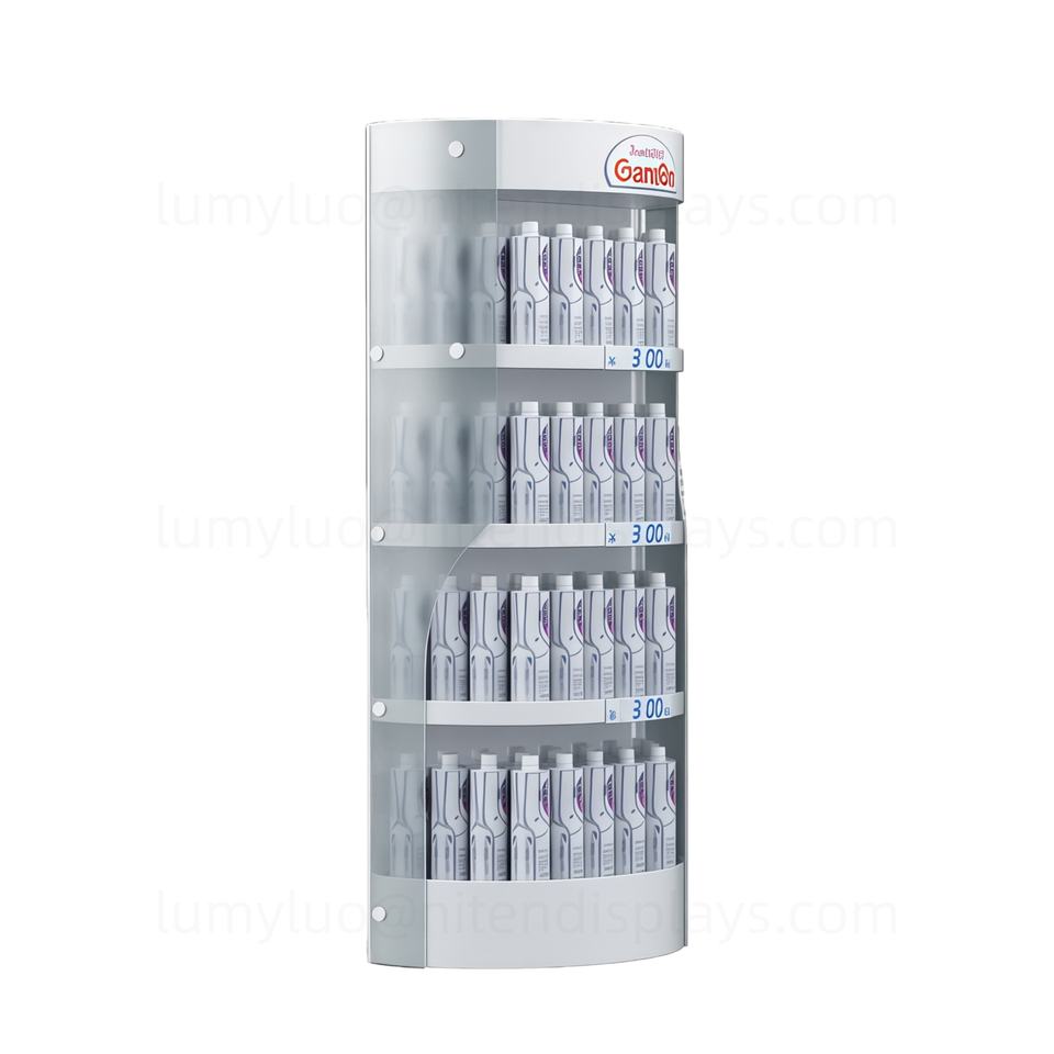Support d'affichage de sol en métal semi-circulaire avec étagères pour l'eau en bouteille et les boissons, présentoirs de vente au détail pour supermarchés