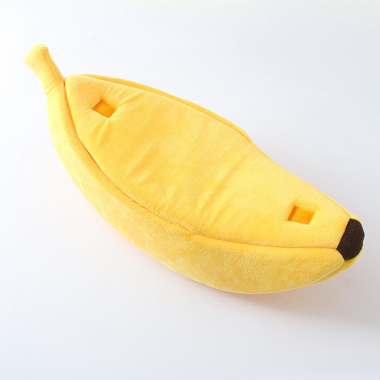 Lit pour chat en forme de banane, design mignon semi-ouvert, super doux, pour jouer et dormir à l'intérieur