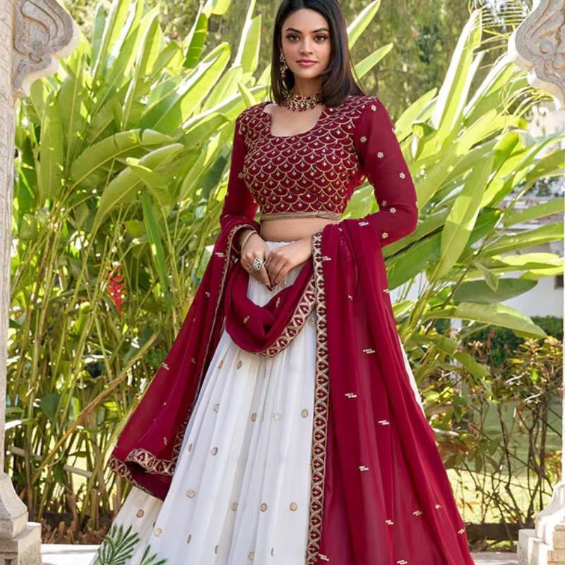 LEHENGA TRAVAIL:Séquence, broderie, feuille