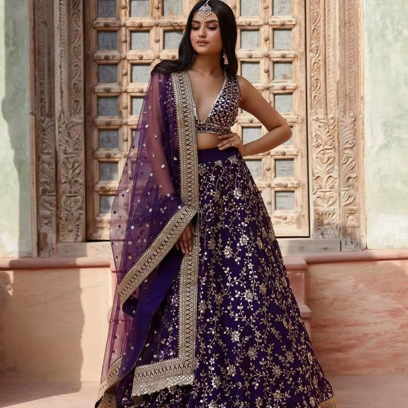 LEHENGA TRAVAIL:Zari, séquence, broderie
