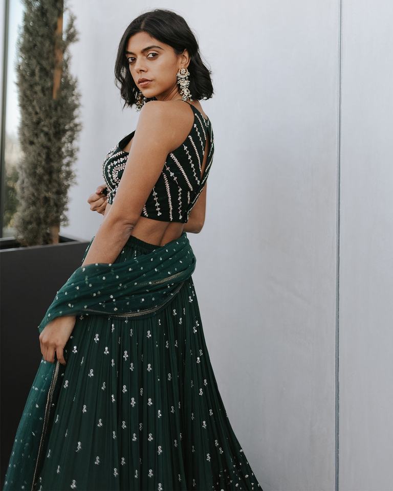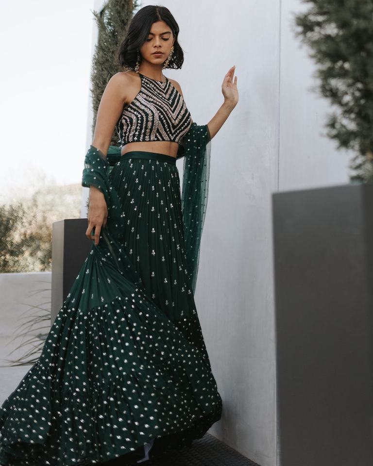 LEHENGA WORK:Zari, Sequence Embroidery Work
