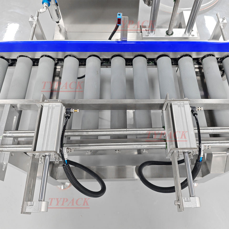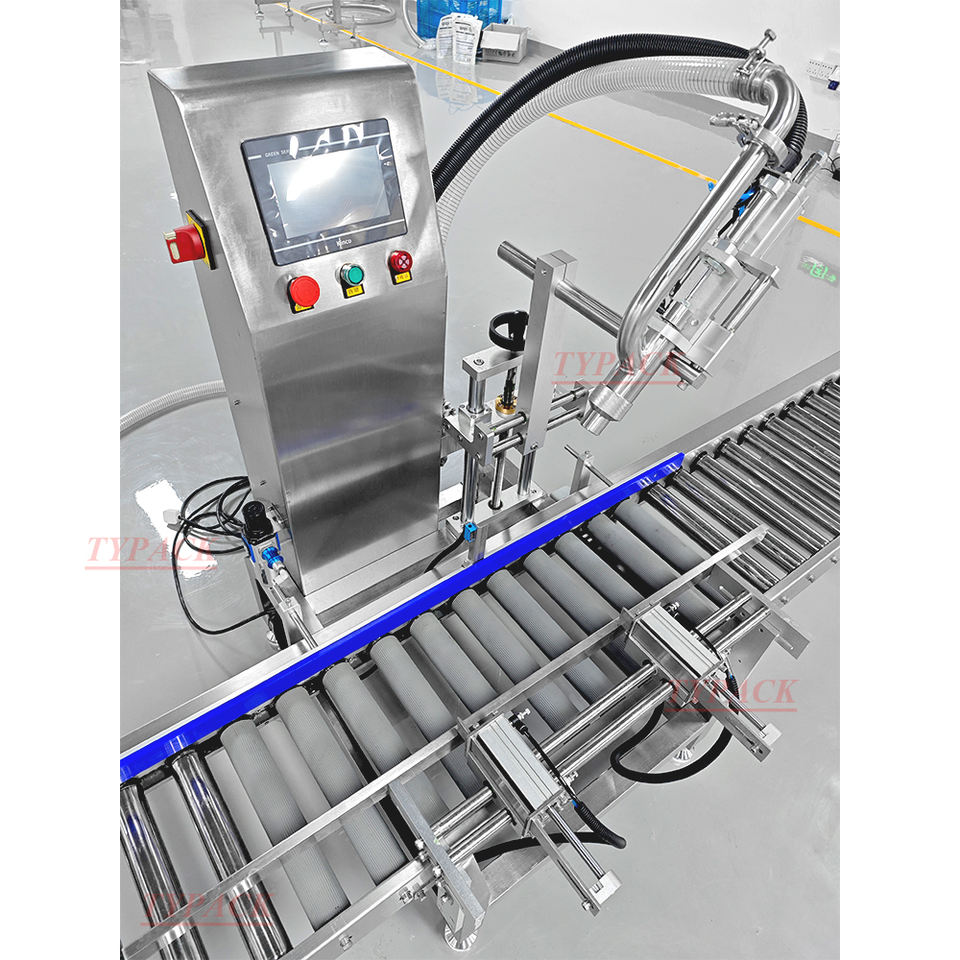 Machine de remplissage semi-automatique de grand seau à pompe à engrenages avec ligne de convoyeur à rouleaux pour barils de gallon barils d'essence barils