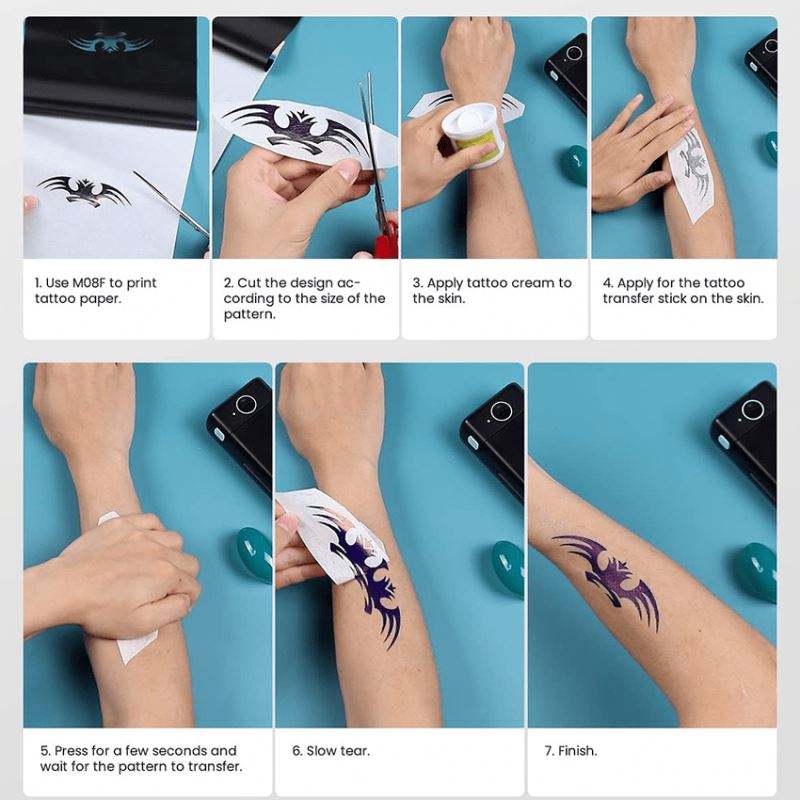 Autocollant semi-permanent imprimante de tatouage Phomemo machine à tatouer portable imprimante thermique pochoir de tatouage temporaire dent bleue imprimée