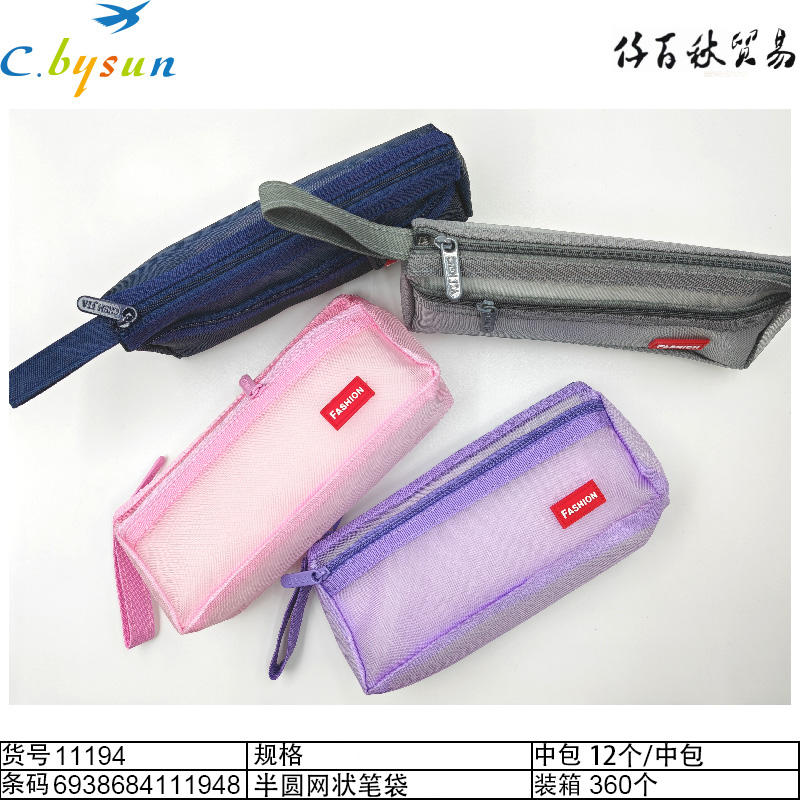 Trousse à crayons semi-circulaire en PVC et tissu Pochette à crayons en maille souple avec fermeture à glissière pour promotions
