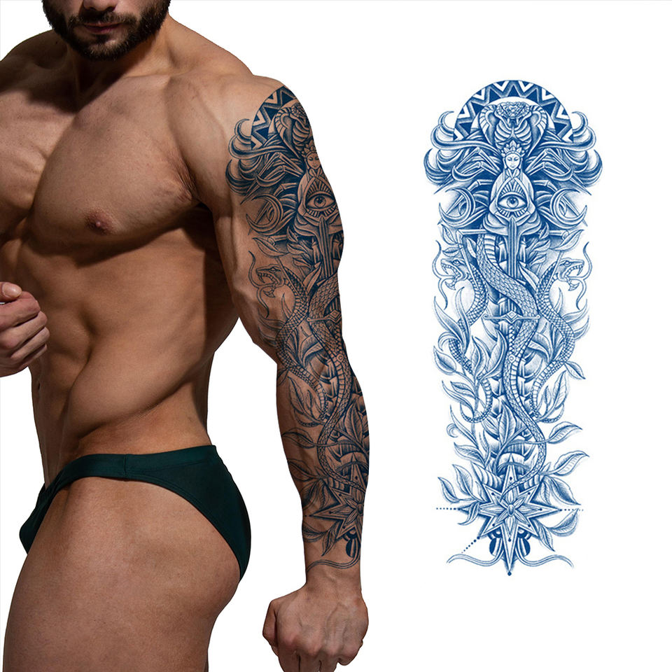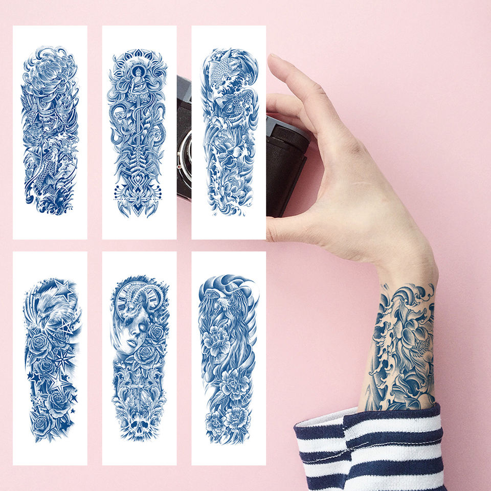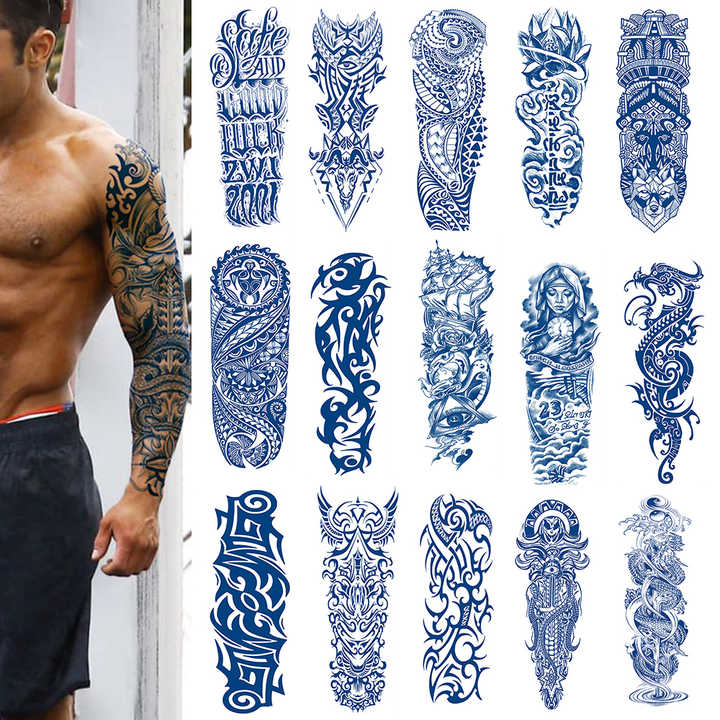 Autocollant de tatouage temporaire semi-permanent, non toxique, professionnel, imperméable, noir, pochoir de corps de bras de main pour encre de tatouage