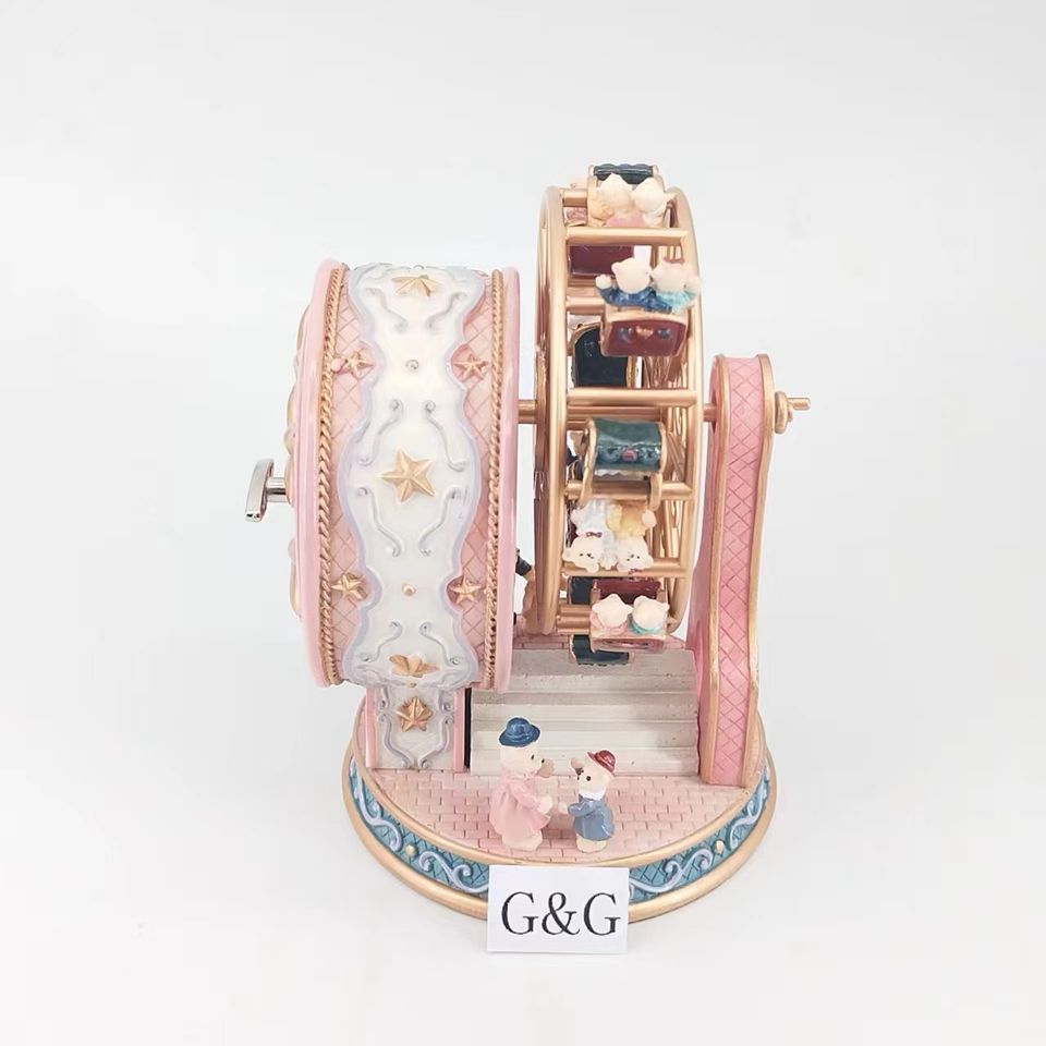 Boîte à musique artisanale en forme de grande roue avec ours, cadeau d'anniversaire pour une meilleure amie, princesse