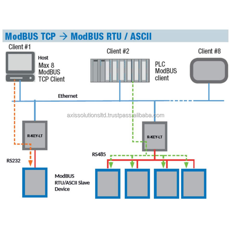 Ethernet to Serial:Max 8 ModBUS TCP clients